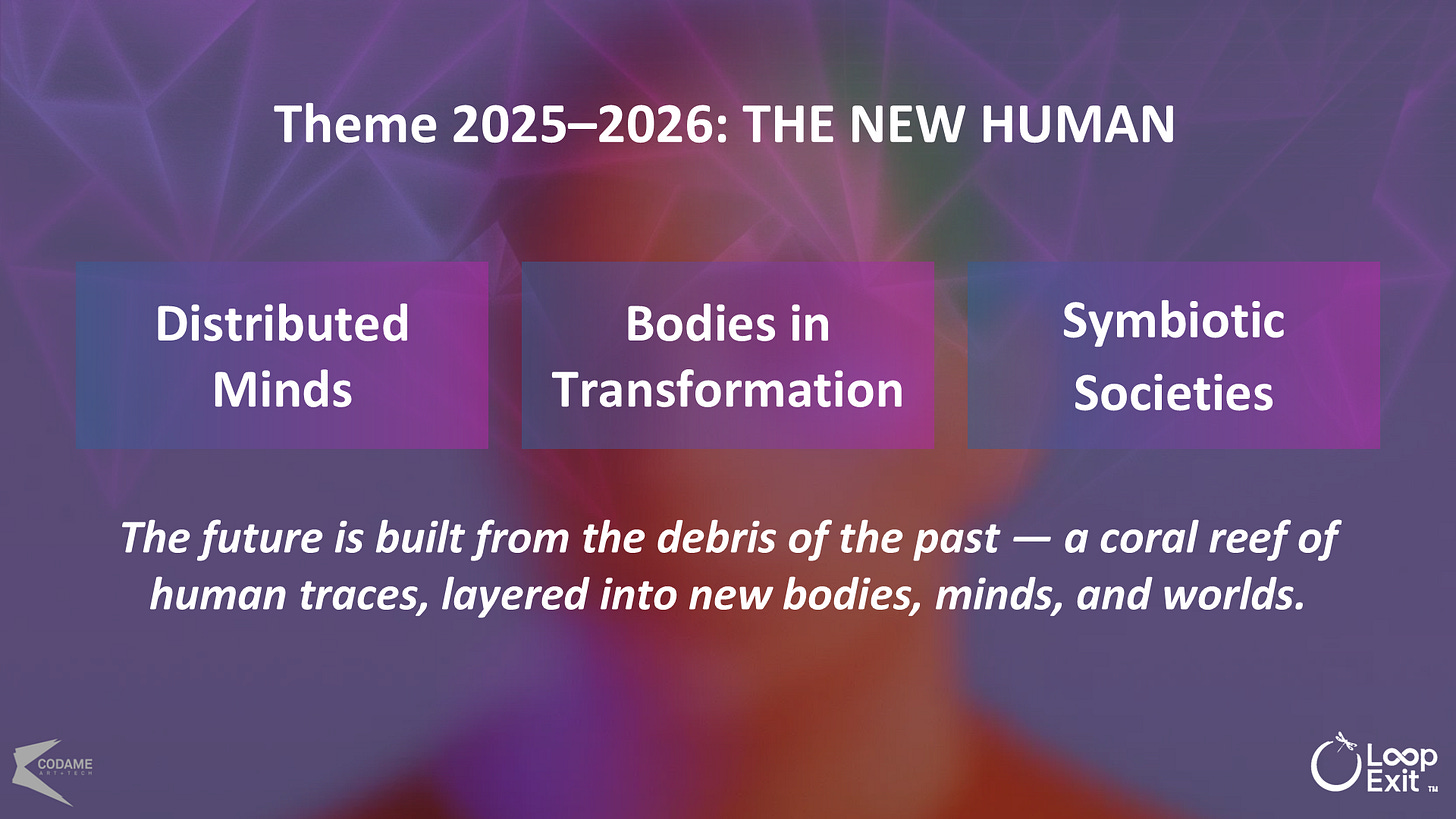 At the CODAME ART+TECH Aperitivo on November 5, 2025, we’ll open this inquiry with “The Distributed Mind of The New Human” themes researched and presented by Loop Exit and Christopher Schutte.