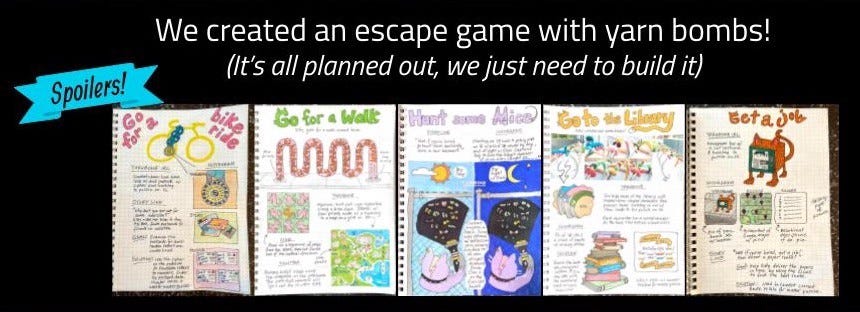 An interactive yarn bombing escape room with an SMS component. 9 cat-themed yarn bombs in the physical world, including hashtags, links to Instagram with more puzzle parts that combine to form a grand puzzle.