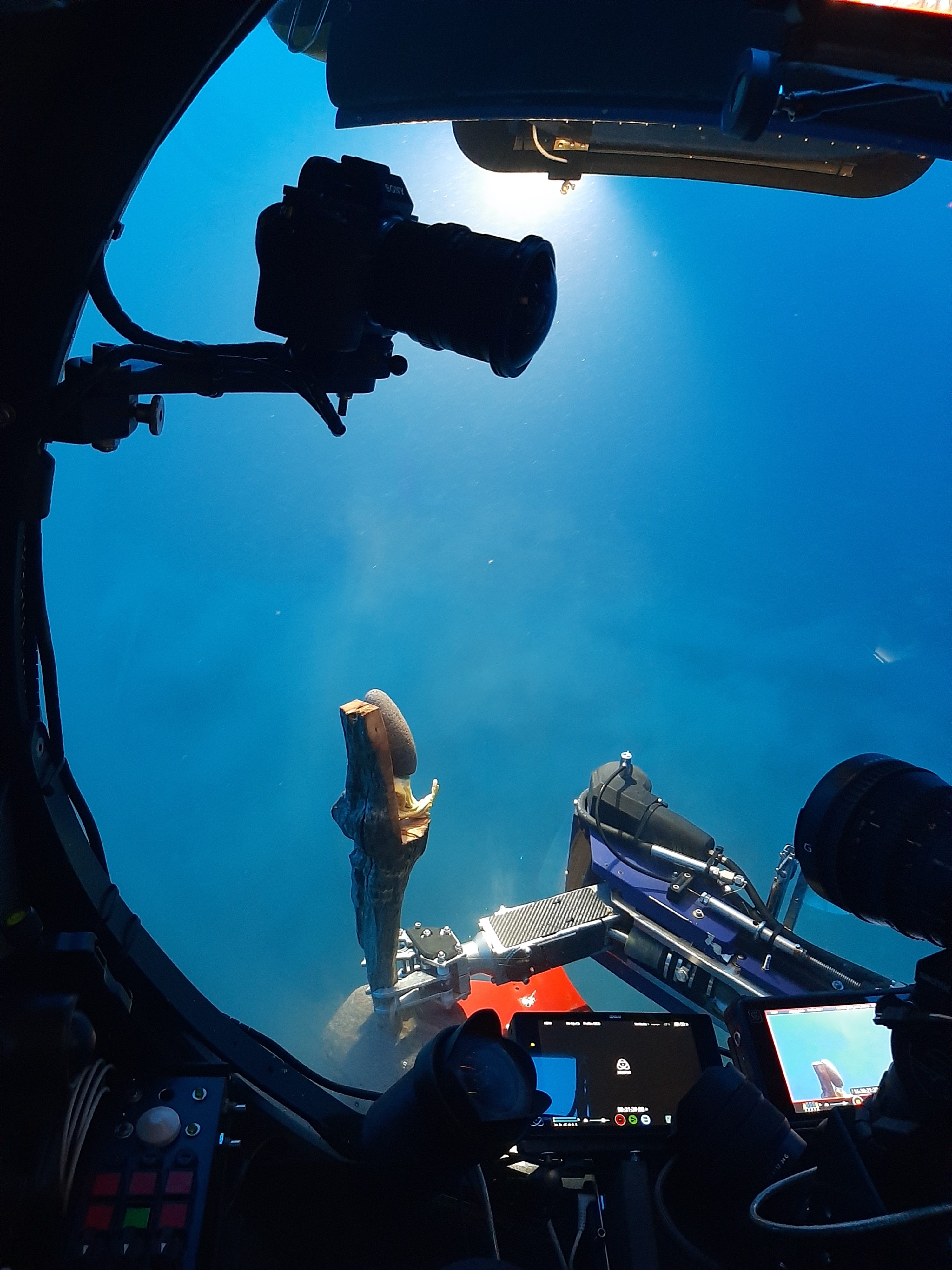 The idea is to deposit a piece of art at the bottom of the sea with the submarine. Through video, the piece of art - normally not visitable as it rests on the seabed - becomes "visitable" by anyone in this medium.