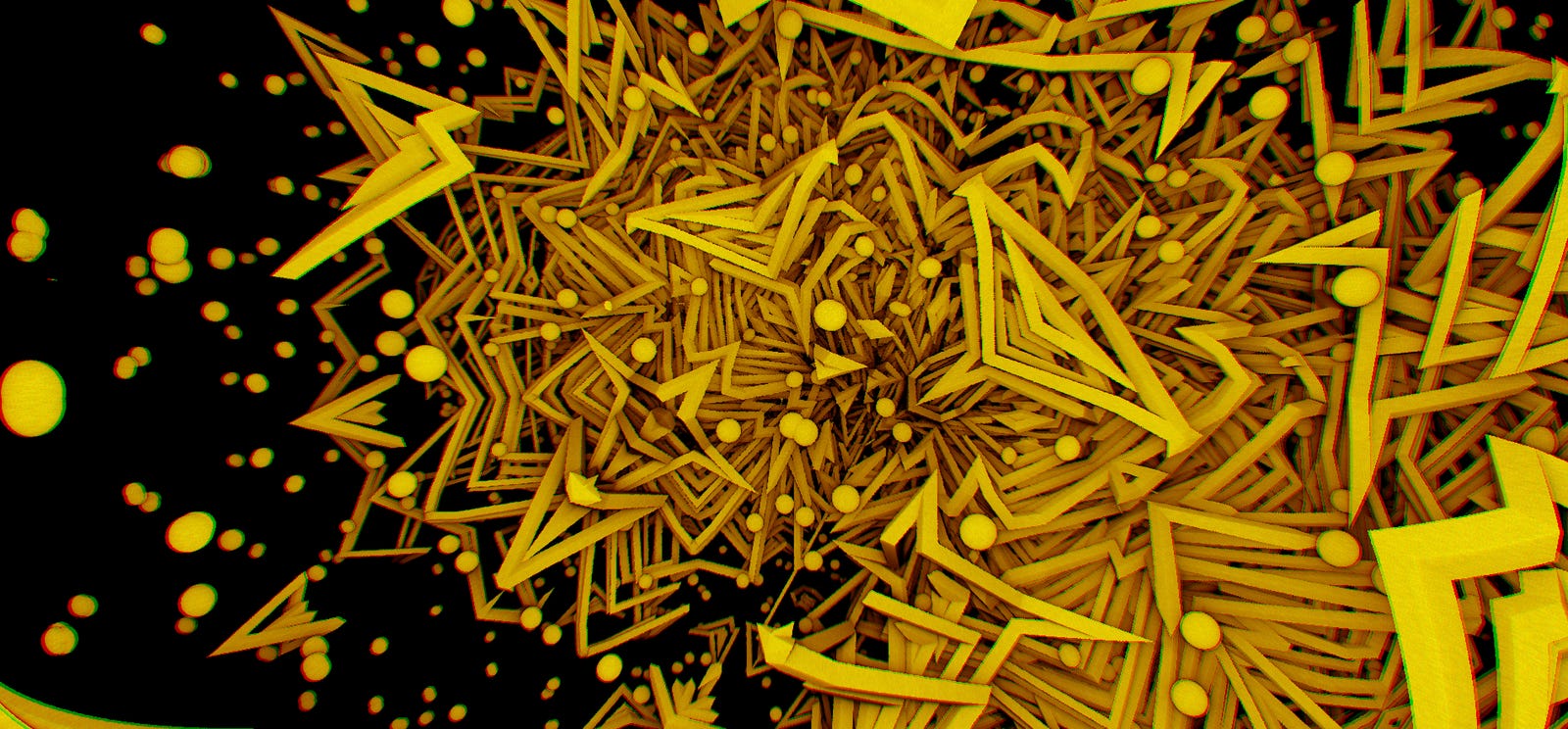 This fractal visualization explores the relationship between chaos and rules. Given simple objects and processes, iteration yields an unprecedented network of connections and complexity. All parameters controls can be changed on the fly, with 3D controls.
