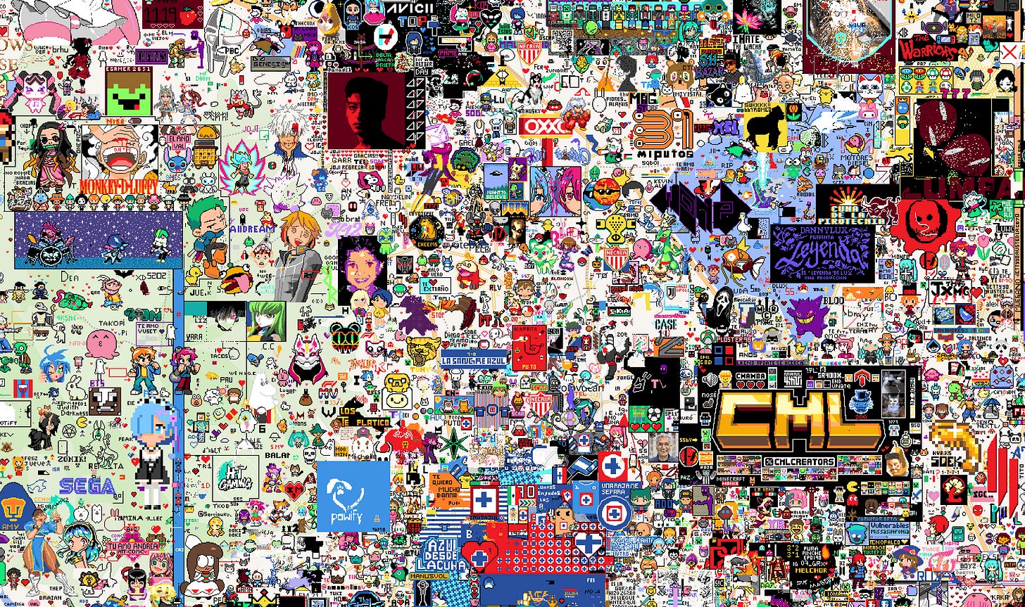 It’s chaotic. It’s funny. It’s emotional. And it’s completely made by people — not platforms. A wild, global experiment in collective creativity, one pixel at a time.