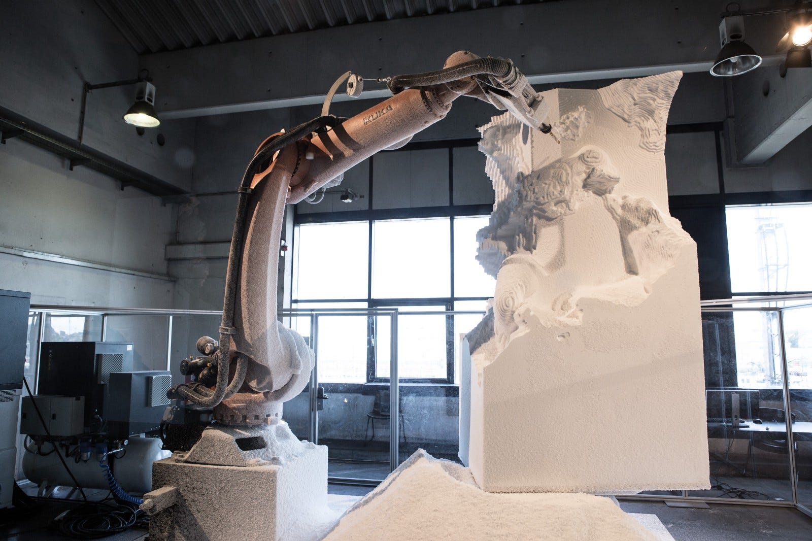 In architecture, robots are already used for 3D printing houses, laying bricks, and cutting, shaping and moulding all manner of forms. But why use robots to make sculpture?