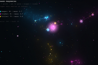 Interactive simulation where communicating agents shift their signal frequencies to avoid interference, inspired by how animals adapt their calls within…