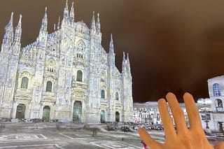 An interactive installation where users use hand gestures to swipe between daytime and nighttime 3D scans of the Duomo di Milano, transforming the…